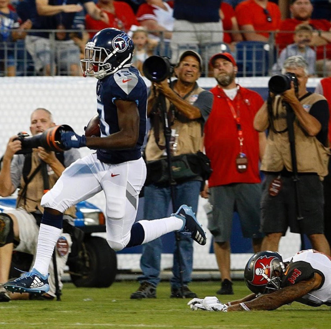Taywan Taylor has always been an intriguing player to me. The Titans moved up in the third round of the 2017 Draft to select Taylor, even though they had just selected Corey Davis the day before. Taylor is a somewhat of a local guy, playing his college ball at Western Kentucky. It was obviously important to General Manager Jon Robinson to give quarterback Marcus Mariota more weapons who could make plays and stretch the field.