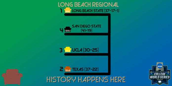 Texas and UCLA kicked off play in the Long Beach Regional with a pitcher’s duel between Nolan Kingham (Texas) and Griffin Canning (UCLA).